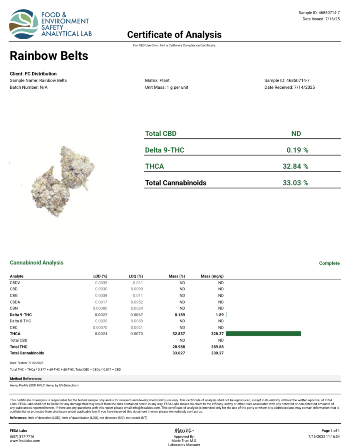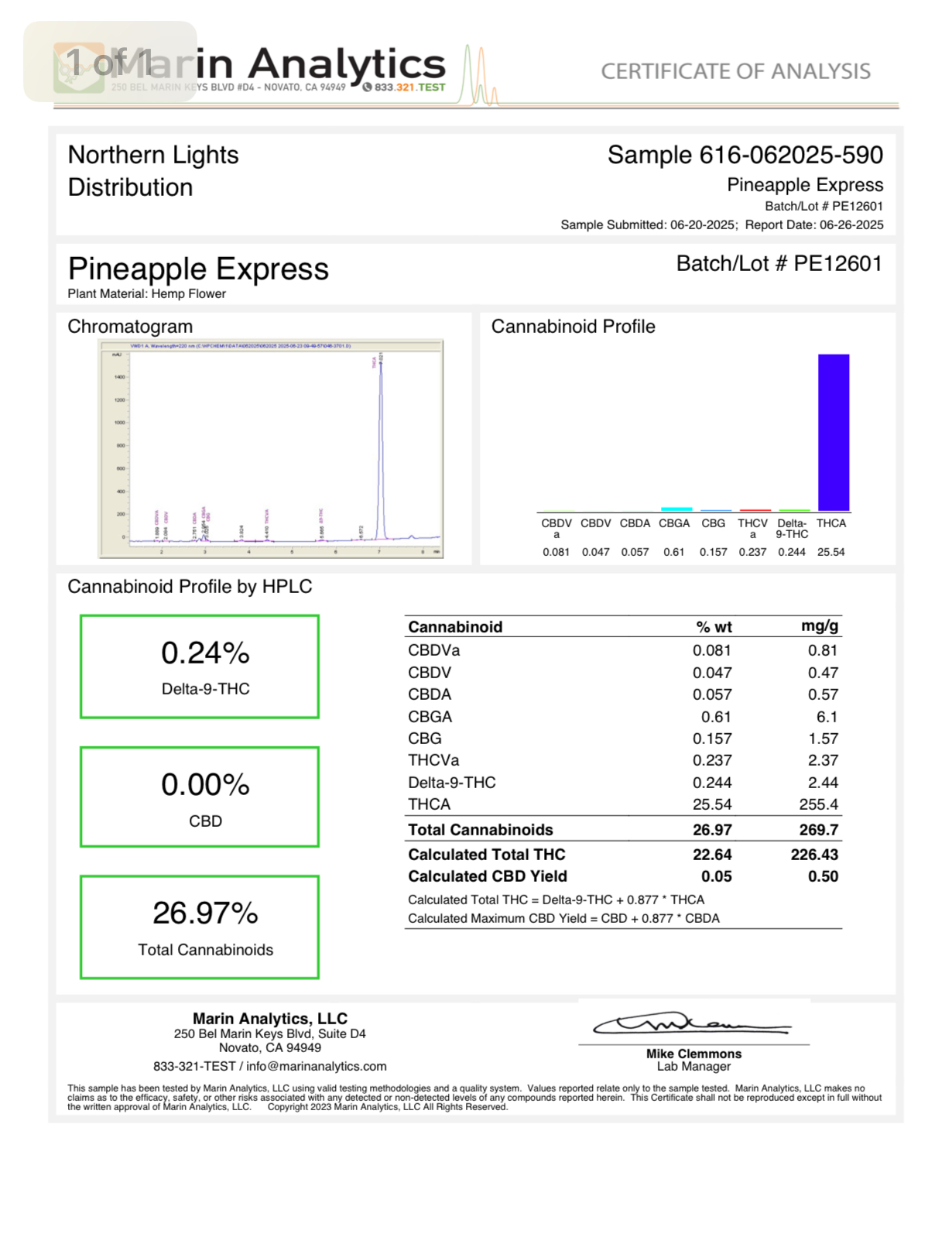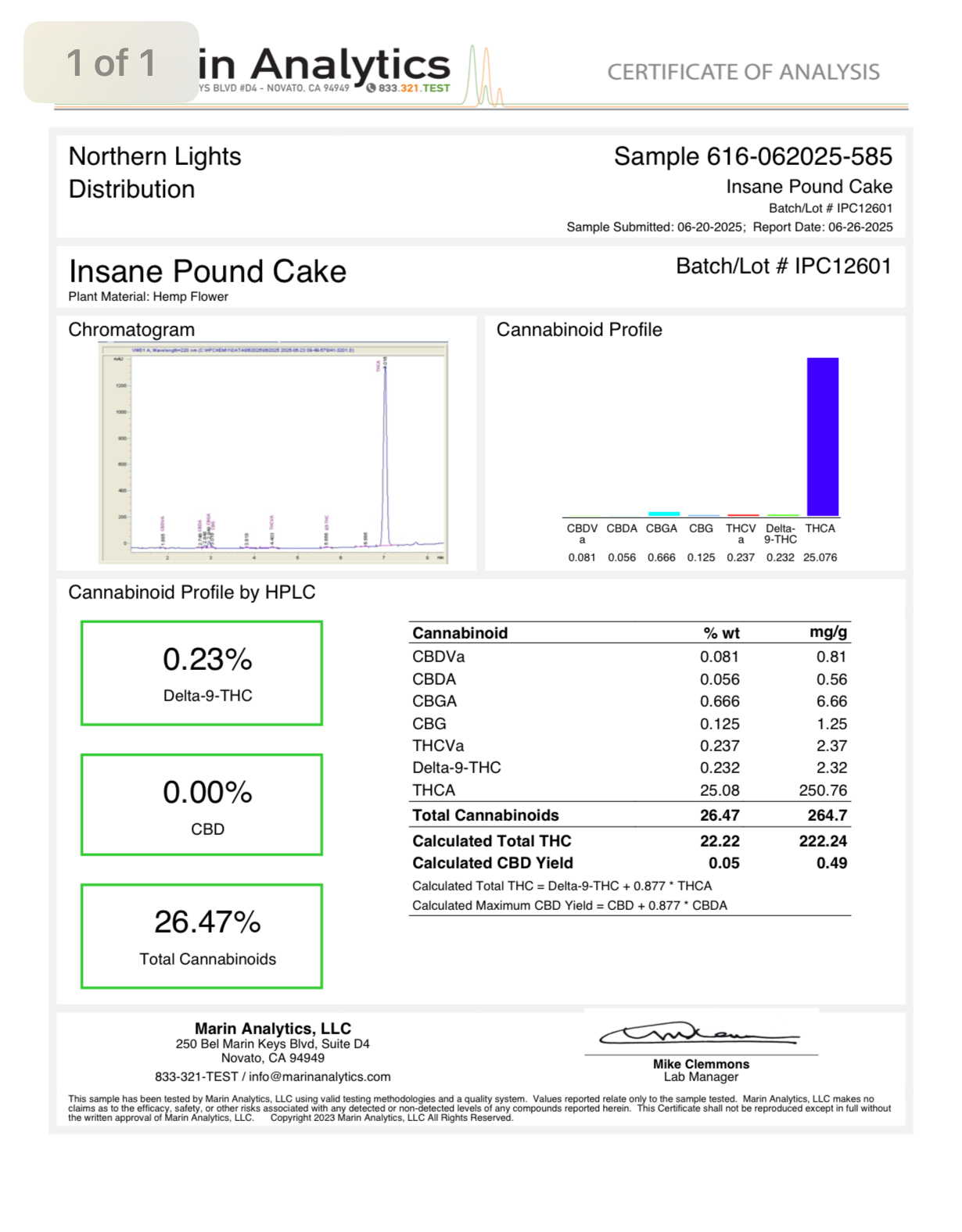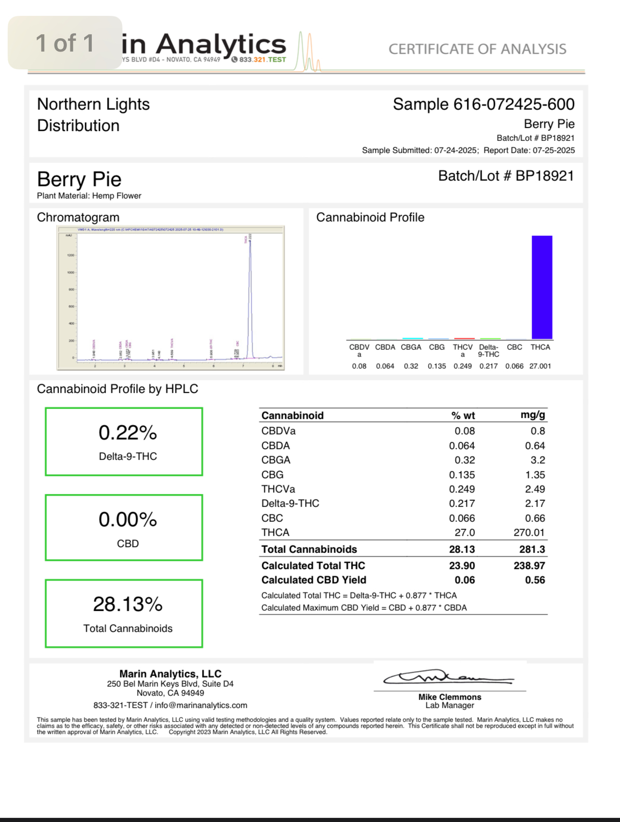 Certificate of Analysis