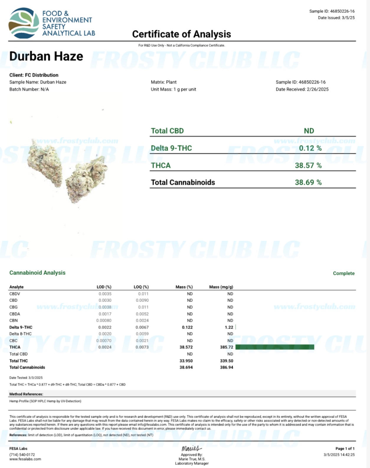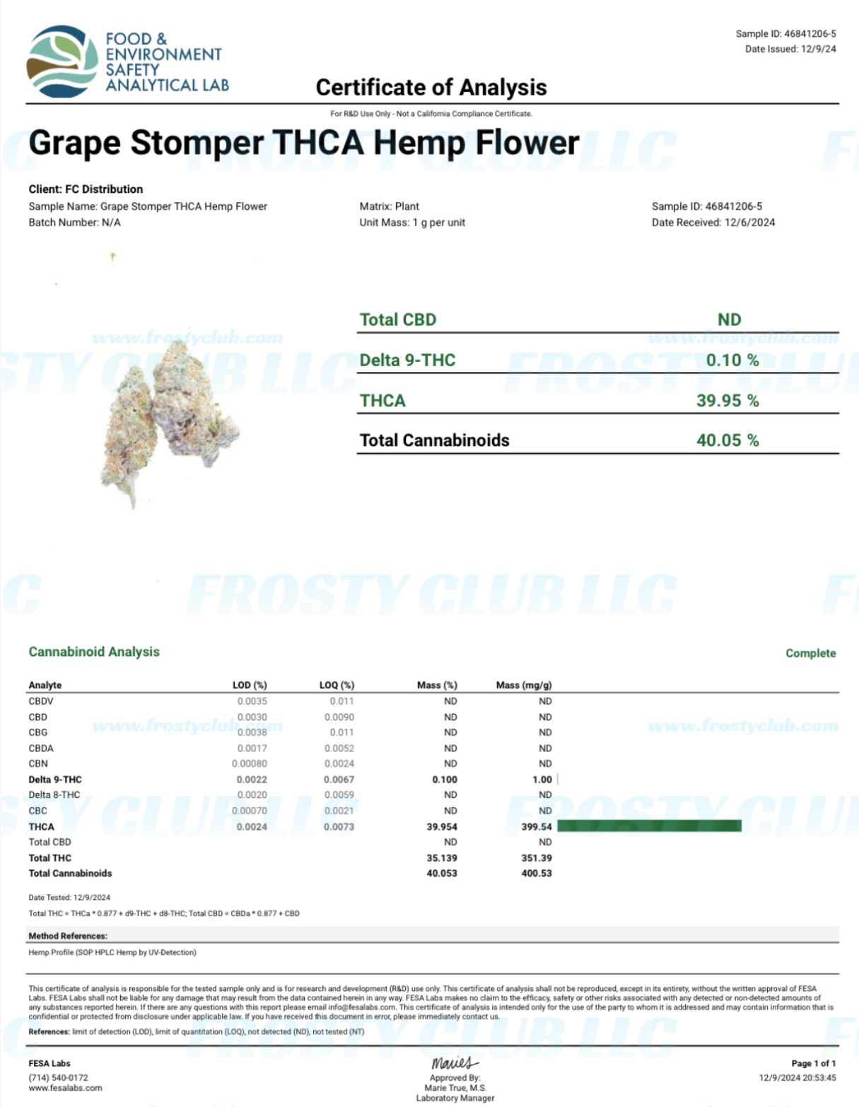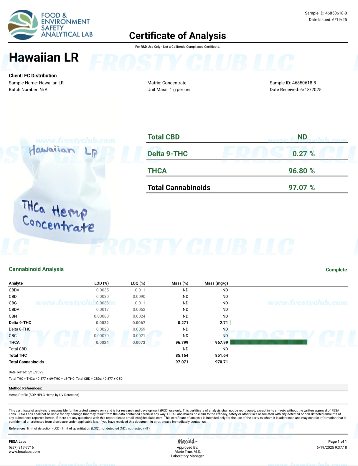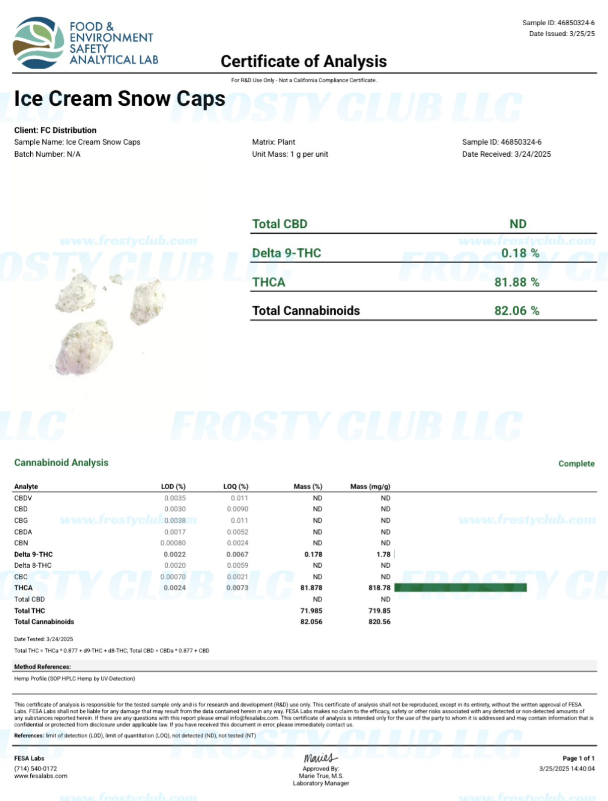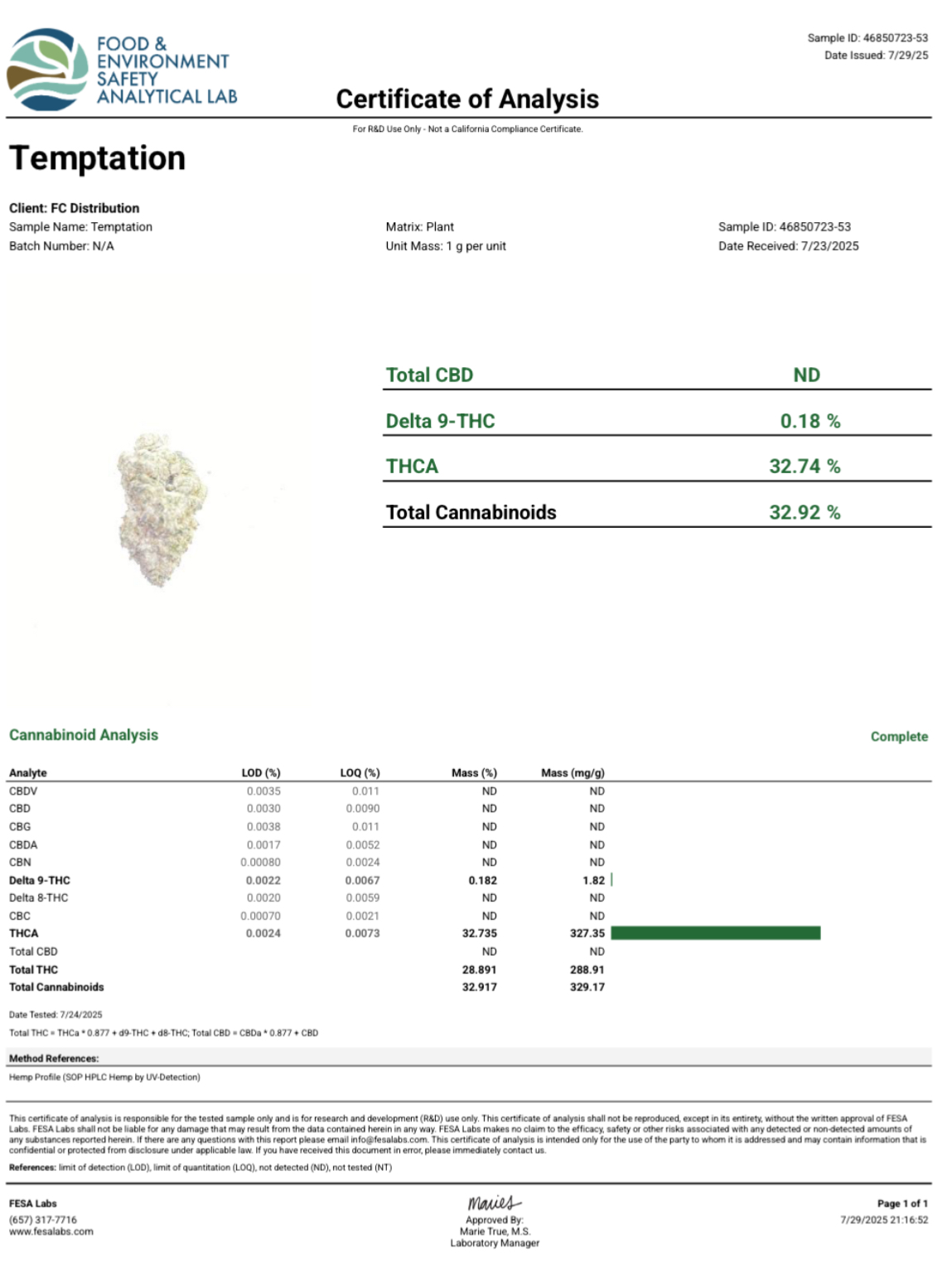 Certificate of Analysis