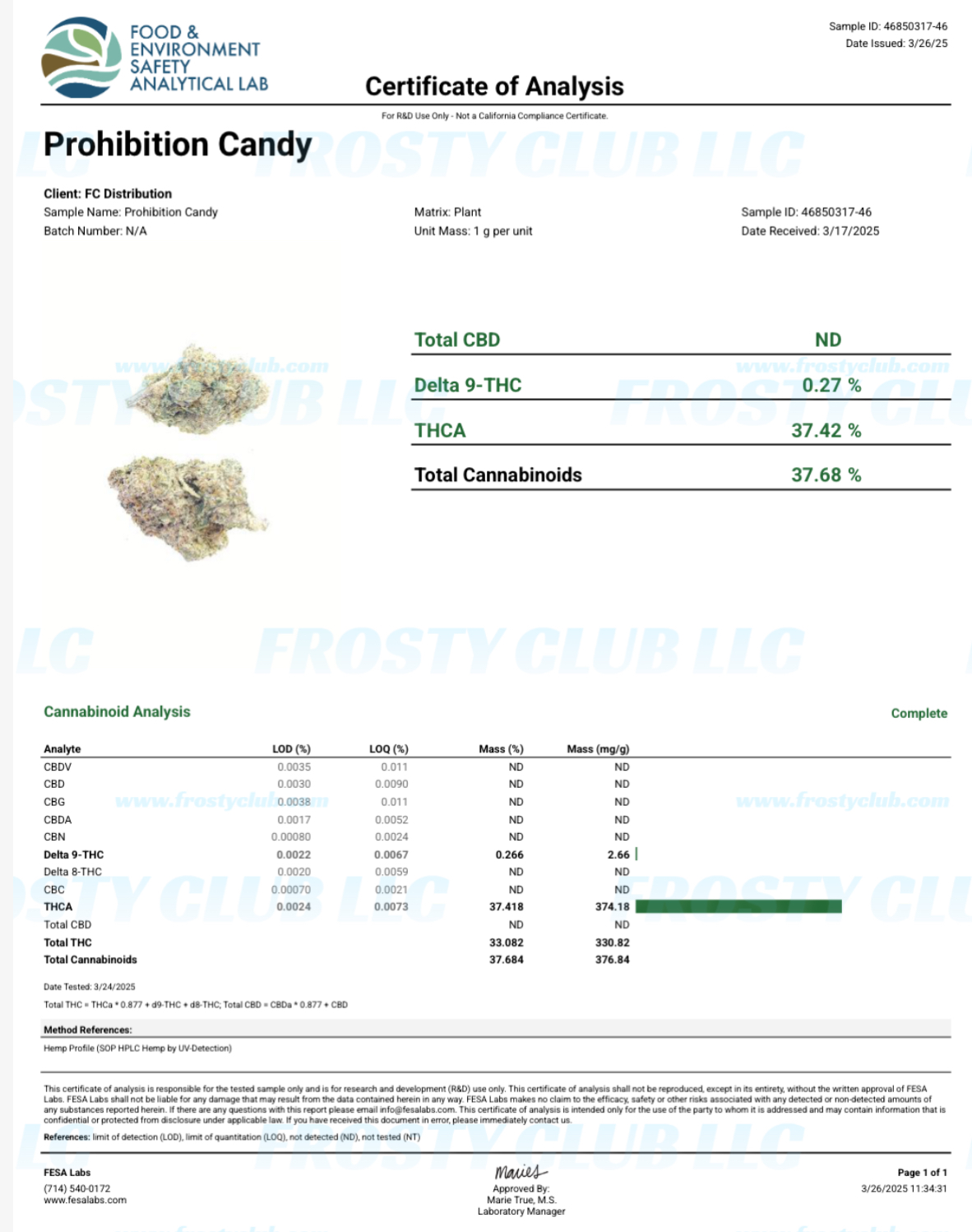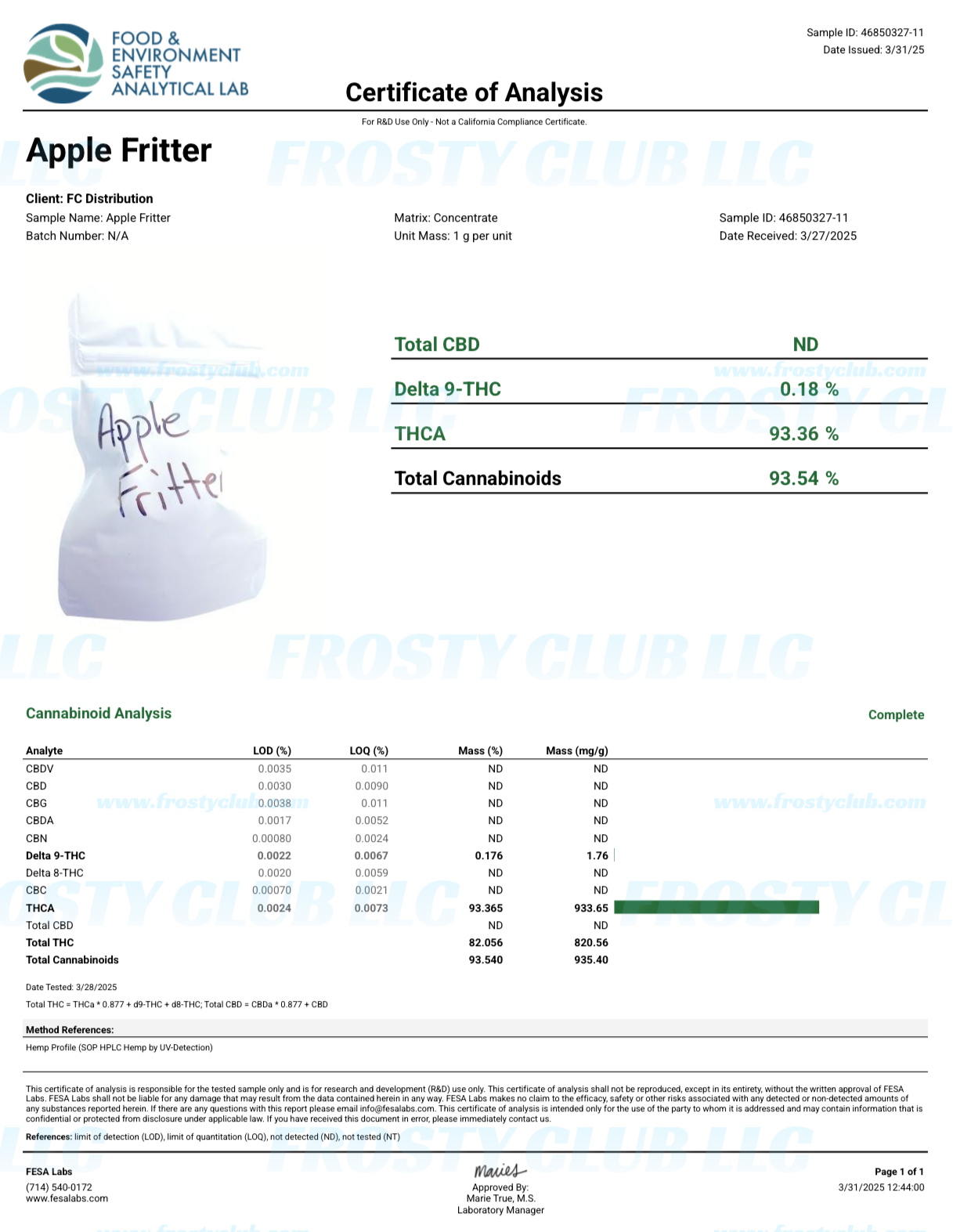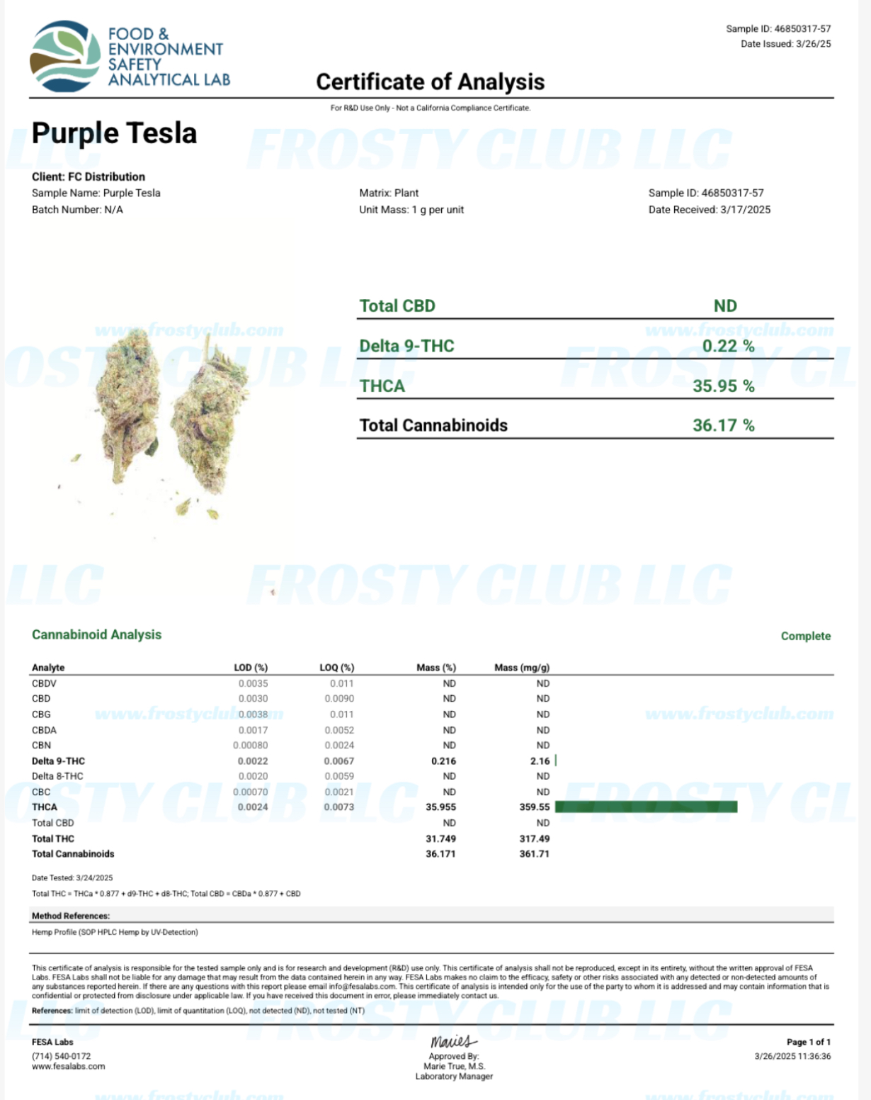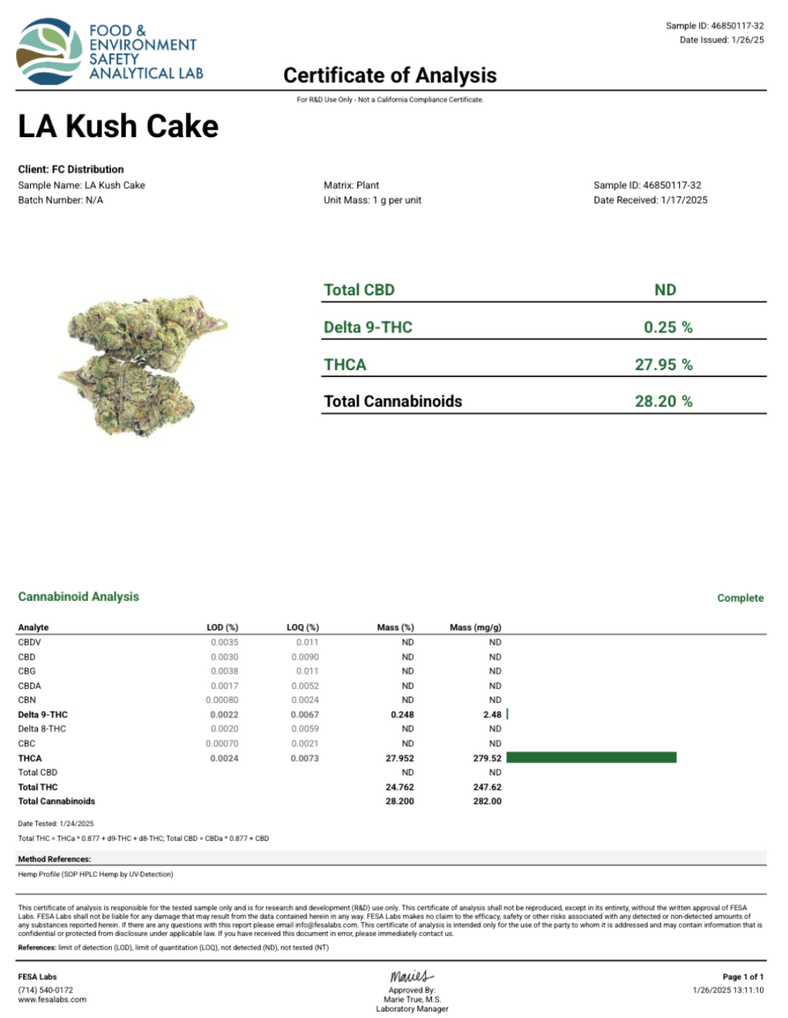 Certificate of Analysis